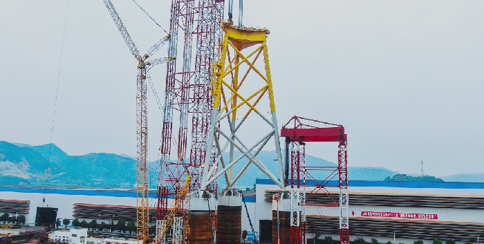 長樂外海海上風(fēng)電場C區(qū)項目位于福州市長樂區(qū)東部海域、閩江口南岸,場址距離長 樂海岸線31千米~50千米海域,平均水深37米~45 米。福建船政承接該項目25套吸 力式導(dǎo)管架制作工程,其中單套三筒導(dǎo)管架高度近百米,底部最大尺寸超40米,單套導(dǎo)管 架最大重量約1200噸。